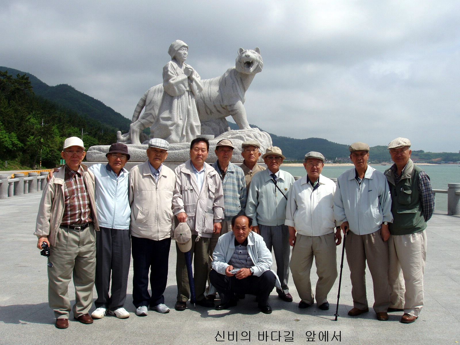 신비의 바다길 앞 뽕할머니상 앞에서