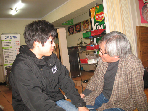 제7회등반대회-애프터1차-노희명교수님과 과대의 기픈대화