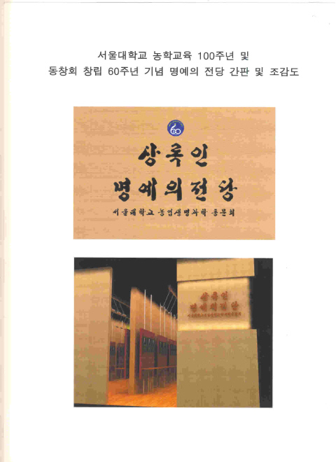 서울대학교 농업 생명 과학대학 총동창회장 한 인규 교수님이 추진하시고 계신,