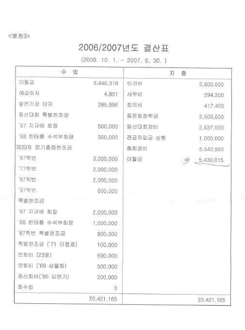 농화학과 동문회 2007 회기 결산