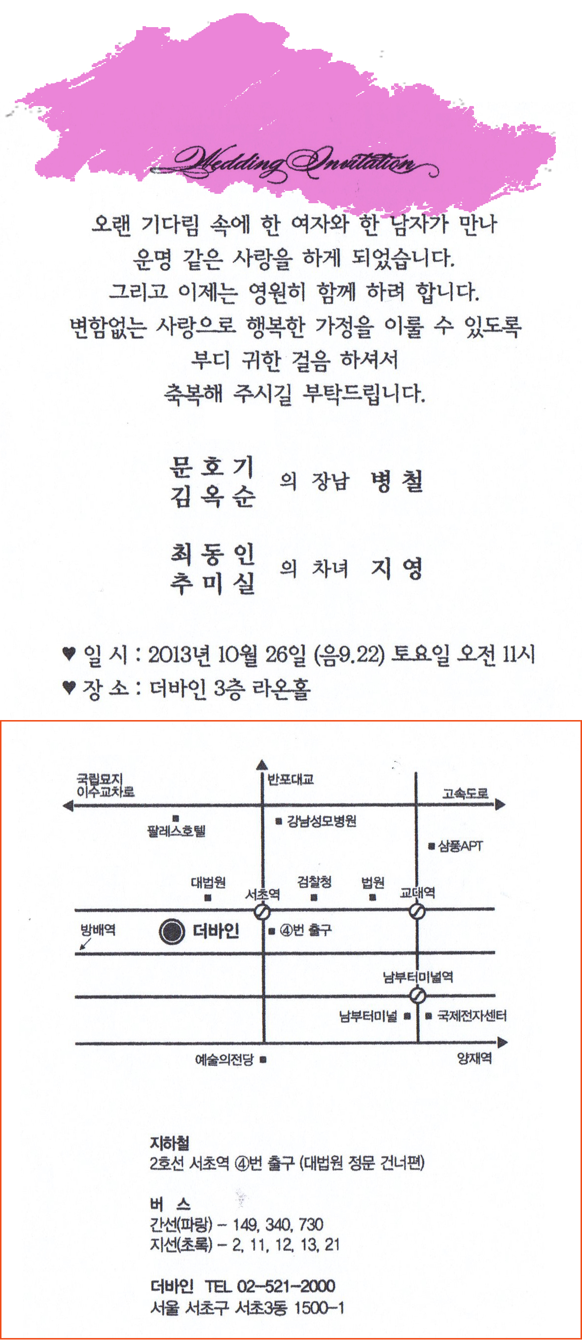 2. 장소 : 더바인웨딩홀 3층 라온홀(2호선 서초역 4번출구)