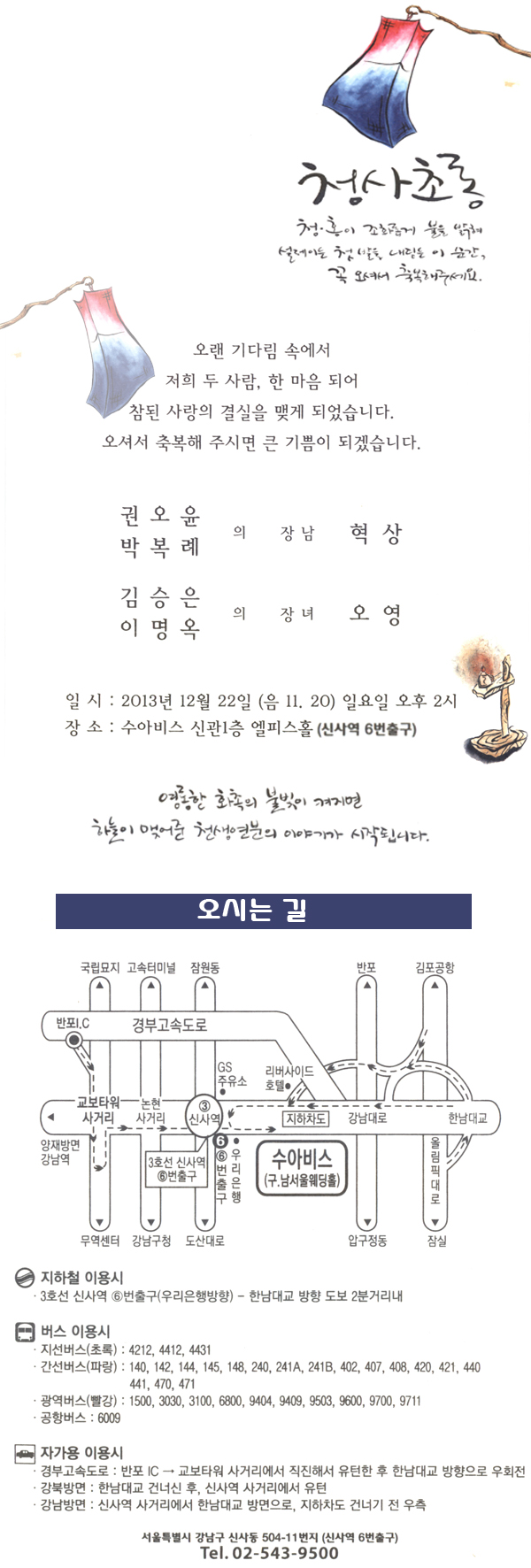 132 71학번 이종린동문의 아들 결혼식이 12월 21일 낮 12시에 삼성동 더라빌에서 있습니다. 운영자 2013.12.20 582